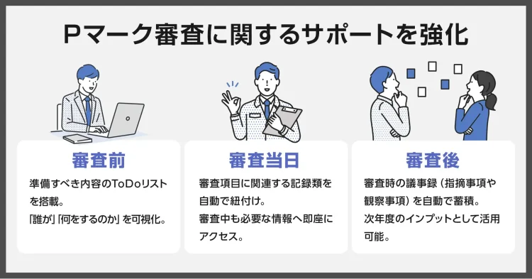 当社が提供するクラウド型Pマーク管理ツール『Pマークアシスト』において、「審査準備」機能の拡充およびアップデートを実施いたしました。